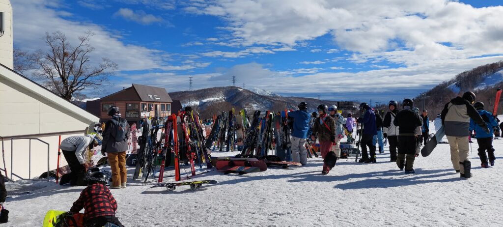 かぐらのレストラン前です。しばらくいると色々な言語が聞こえてきます。コロナ明けから急増している外国人は今年はさらに多くなった気がします。私が分かるのは発音で英語と多分台湾の方と思われる人が話す中国語だけです。何か国の人がスキー場に来ている気になりませんか?チャンスがあったら一度リサーチしてみたいものです。