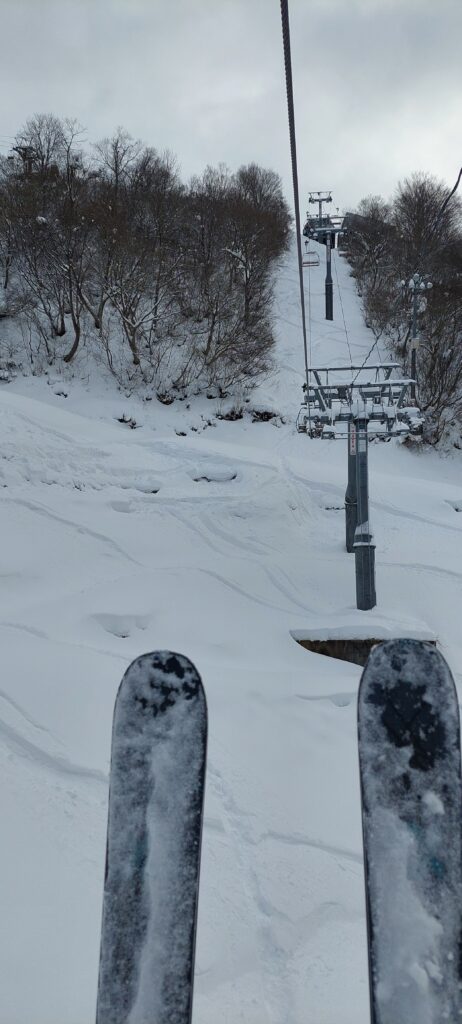 昨日は吹雪の中でパウダーでした。 今日は雪がやんで視界の良い中でのパウダーです。 昨年まで最高のパウダーでも滑れる時間帯はレッスン前や終わった時、1・2本しか味わえないパウダーでしたが、今年からレッスンのない日は自由に滑れるようになりました。(笑)