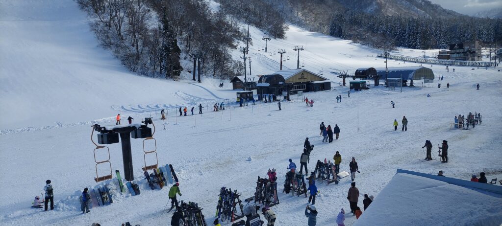 かぐらの特徴は急斜面で常に40~60kmのスピードが出ます。スキー操作や運動、操作のタイミングを覚えるにはスピードが早いと思う人が多いと思います。その点みつまたは20~40kmのスピードです。